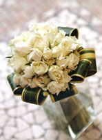 受け取る側のことを配慮して、ワイヤリングなどの加工はせず、クラッチブーケのようにバンディングします。 |