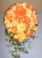| 涙の形を逆さまにした形のブーケです。キャスケードブーケとラウンドブーケの中間サイズ。程よい正装感があり、どんな花嫁様にもお似合いのスタイルです。 |