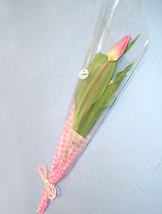 チュウリップの一輪ラッピングは、卒業生へのプレゼントにぴったりです。 |
